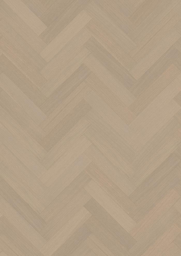 Et stilfuldt designgulv, Eg Mint Herringbone, tilfører dit hjem en sofistikeret karakter med en lys beige nuance. Den bløde, børstede overflade fremhæver træets naturlige struktur, mens den ultramatte finish giver et roligt og elegant udtryk.