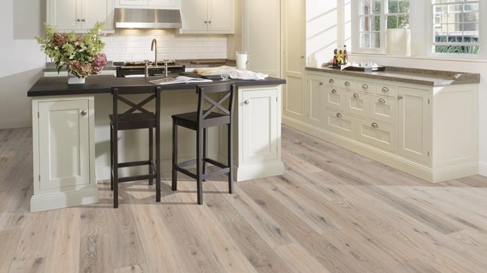 Das weiße Finish dieser Eiche Landhausdiele aus der Artisan Collection bringt die natürlich vorkommende nFarbvariationen, die von Heidegrau bis zu blassem Silberlavendel reichen, optisch in Einklang. Jede Diele wird sorgfältig gebürstet, um den Charakter der Maserung und die natürliche Textur des Holzes hervorzuheben. Die vierseitige Fase sorgt für eine klassische Landhausdielenoptik. Handhobelungen betonen den Vintage Look des Bodens.