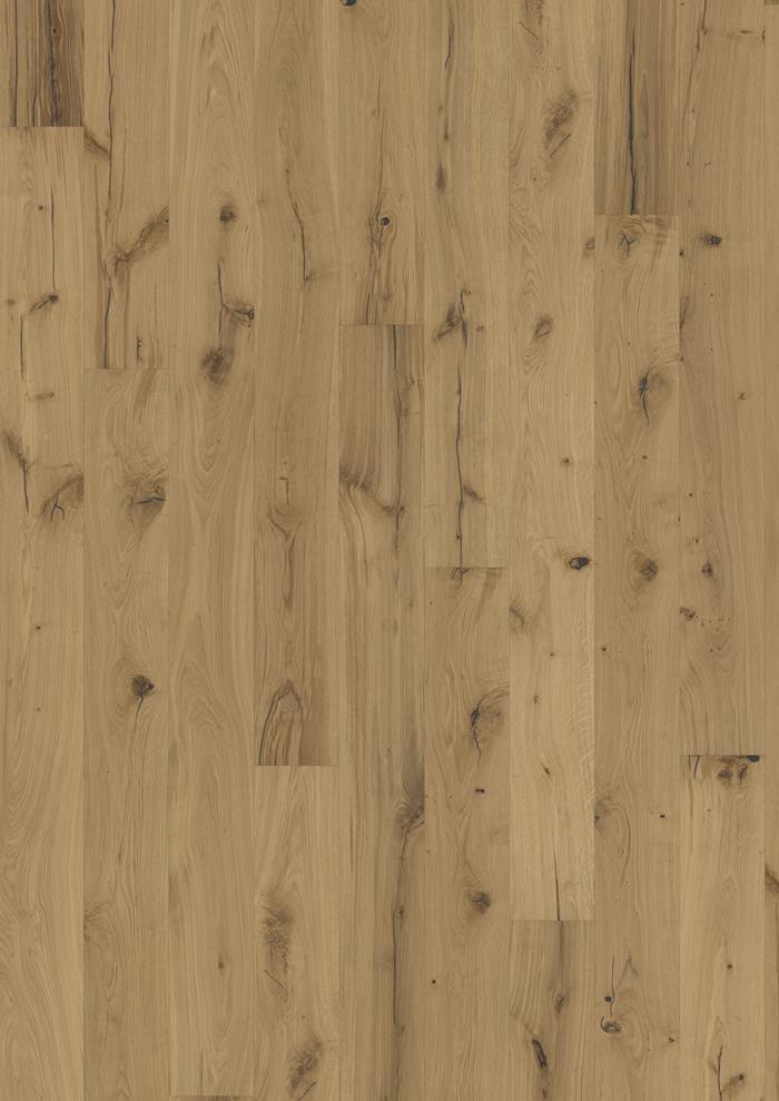 Alle natürlich vorkommenden Farbunterschiede des Holzes erlaubt, von hellen bis zu dunklen Brauntönen. Splintholz kann vorkommen. Das Produkt umfasst schwarze Äste und Risse, die in jeder Größe und Anzahl vorkommen.