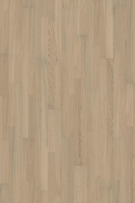 Eiche mit geringen Farbunterschieden, weiß gebeizt und matt lackiert.