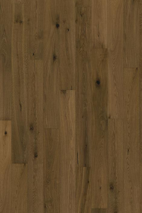 Räuchereiche CD, 2-Schicht-Parkett, ist ein rustikaler, dunkelbrauner Boden.
