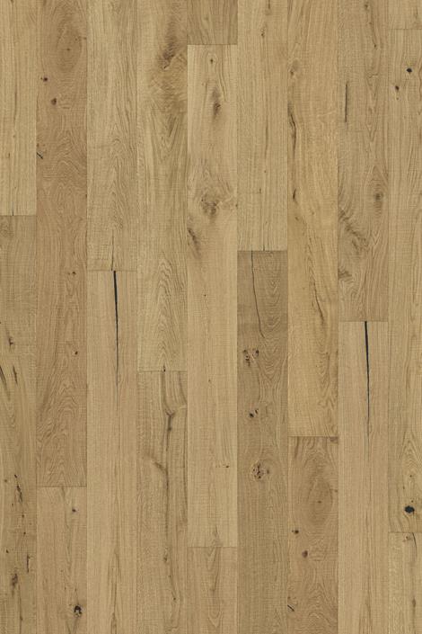 Alle natürlich vorkommenden Farbunterschiede des Holzes erlaubt, von hellen bis zu dunklen Brauntönen. Splintholz kann vorkommen. Das Produkt umfasst sehr große Abweichungen sowie schwarze Äste und Risse. Äste und Risse kommen in jeder Größe und Anzahl vor.