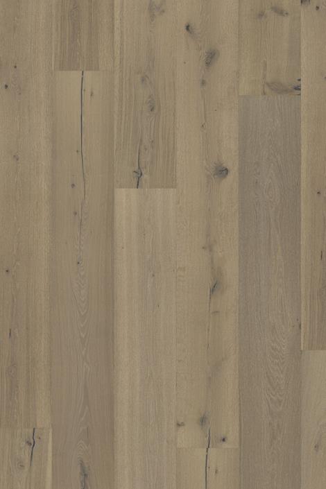 Die graue Färbung dieses 1-Stab Eichenparketts aus der Royal Collection sorgt für einen ausgewogenes Design und lässt die Nuancen des Holzes sichtbar. Jede Diele wird sorgfältig gebürstet, um den Charakter der Maserung hervorzuheben und die Textur des Holzes zu verstärken. Die vierseitige Fase an den Kanten sorgt für eine klassische Optik und Haptik der Dielen.