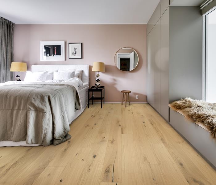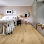Frosted Oat plank is inspired by late autumn grain fields covered in frost.The soft white and transparent stain allows the rustic wood to enhance the natural design completed with an ultramatt finish.