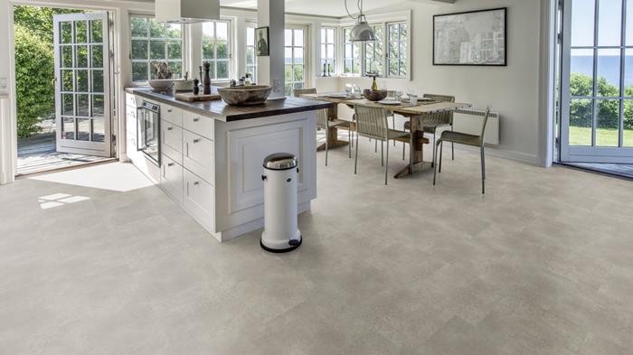 Our Luxury Tiles Dry Back collection is available in a wide selection of wood and stone designs. The wood designs range from traditional to elegant herringbone and rustic, while the stone designs span from classic stone to concrete. It also includes exciting patterns. The Dry Back floors, with a 0.7 mm wear layer, are based on virgin vinyl and constructed in five different layers, topped by a ceramic coating. The result is extremely resilient and strong floors resistant to both scratching and water, which means that these floors are suitable even for spaces exposed to heavy traffic. Just like all our other Luxury Tiles floors, they are phthalate-free.