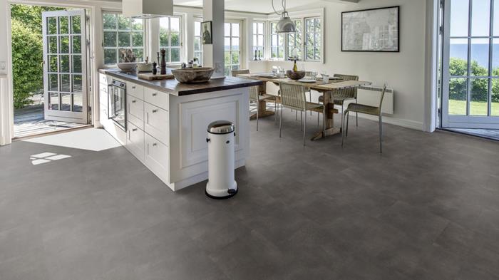 Our Luxury Tiles Dry Back collection is available in a wide selection of wood and stone designs. The wood designs range from traditional to elegant herringbone and rustic, while the stone designs span from classic stone to concrete. It also includes exciting patterns. The Dry Back floors, with a 0.7 mm wear layer, are based on virgin vinyl and constructed in five different layers, topped by a ceramic coating. The result is extremely resilient and strong floors resistant to both scratching and water, which means that these floors are suitable even for spaces exposed to heavy traffic. Just like all our other Luxury Tiles floors, they are phthalate-free.