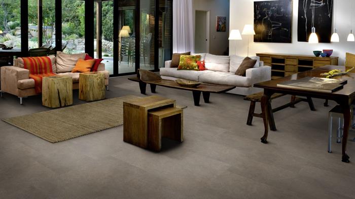 Our Luxury Tiles Dry Back collection is available in a wide selection of wood and stone designs. The wood designs range from traditional to rustic, while the stone designs span from classic stone to concrete. It also includes exciting patterns. The Dry Back floors, with a 0.3 mm wear layer, are based on virgin vinyl and constructed in five different layers, topped by a ceramic coating. The result is extremely resilient and strong floors resistant to both scratching and water, which means that these floors are suitable even for spaces exposed to heavy traffic. Just like all our other Luxury Tiles floors, they are phthalate-free.