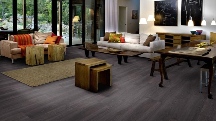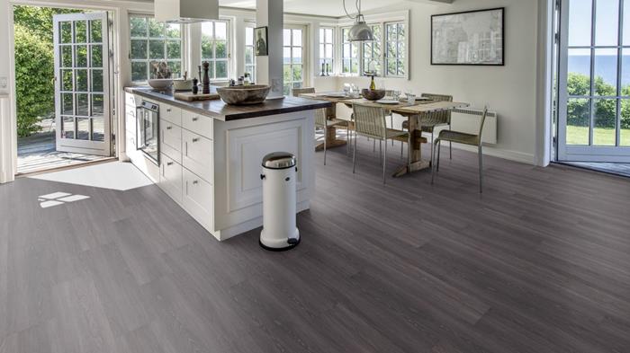 Our Luxury Tiles Dry Back collection is available in a wide selection of wood and stone designs. The wood designs range from traditional to rustic, while the stone designs span from classic stone to concrete. It also includes exciting patterns. The Dry Back floors, with a 0.3 mm wear layer, are based on virgin vinyl and constructed in five different layers, topped by a ceramic coating. The result is extremely resilient and strong floors resistant to both scratching and water, which means that these floors are suitable even for spaces exposed to heavy traffic. Just like all our other Luxury Tiles floors, they are phthalate-free.