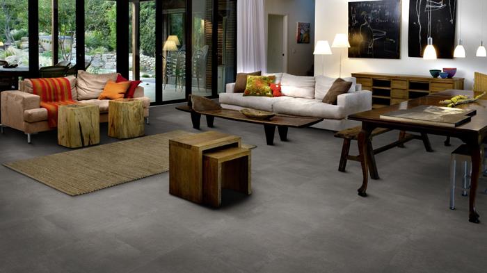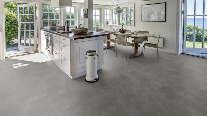 Our Luxury Tiles Dry Back collection is available in a wide selection of wood and stone designs. The wood designs range from traditional to elegant herringbone and rustic, while the stone designs span from classic stone to concrete. It also includes exciting patterns. The Dry Back floors, with a 0.7 mm wear layer, are based on virgin vinyl and constructed in five different layers, topped by a ceramic coating. The result is extremely resilient and strong floors resistant to both scratching and water, which means that these floors are suitable even for spaces exposed to heavy traffic. Just like all our other Luxury Tiles floors, they are phthalate-free.