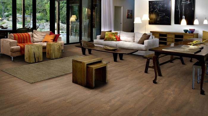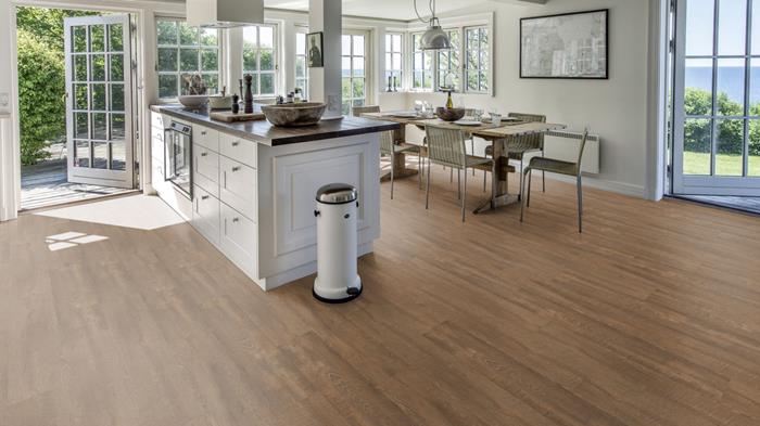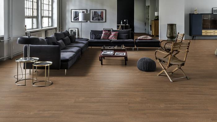 Our Luxury Tiles Dry Back collection is available in a wide selection of wood and stone designs. The wood designs range from traditional to rustic, while the stone designs span from classic stone to concrete. It also includes exciting patterns. The Dry Back floors, with a 0.3 mm wear layer, are based on virgin vinyl and constructed in five different layers, topped by a ceramic coating. The result is extremely resilient and strong floors resistant to both scratching and water, which means that these floors are suitable even for spaces exposed to heavy traffic. Just like all our other Luxury Tiles floors, they are phthalate-free.