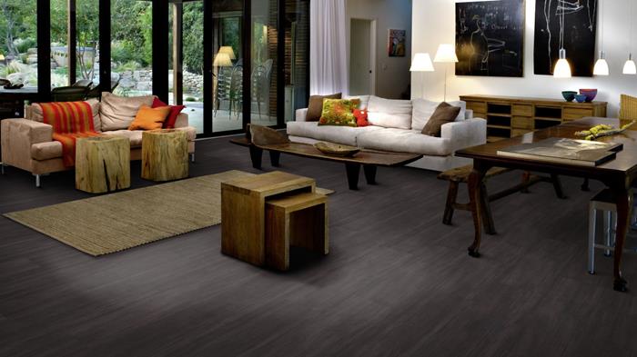 Our Luxury Tiles Dry Back collection is available in a wide selection of wood and stone designs. The wood designs range from traditional to elegant herringbone and rustic, while the stone designs span from classic stone to concrete. It also includes exciting patterns. The Dry Back floors, with a 0.7 mm wear layer, are based on virgin vinyl and constructed in five different layers, topped by a ceramic coating. The result is extremely resilient and strong floors resistant to both scratching and water, which means that these floors are suitable even for spaces exposed to heavy traffic. Just like all our other Luxury Tiles floors, they are phthalate-free.