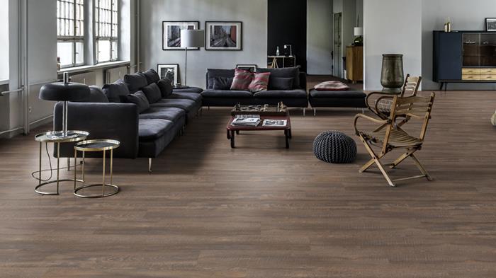 Our Luxury Tiles Dry Back collection is available in a wide selection of wood and stone designs. The wood designs range from traditional to rustic, while the stone designs span from classic stone to concrete. It also includes exciting patterns. The Dry Back floors, with a 0.3 mm wear layer, are based on virgin vinyl and constructed in five different layers, topped by a ceramic coating. The result is extremely resilient and strong floors resistant to both scratching and water, which means that these floors are suitable even for spaces exposed to heavy traffic. Just like all our other Luxury Tiles floors, they are phthalate-free.