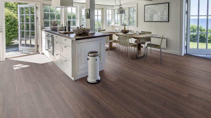 Our Luxury Tiles Dry Back collection is available in a wide selection of wood and stone designs. The wood designs range from traditional to elegant herringbone and rustic, while the stone designs span from classic stone to concrete. It also includes exciting patterns. The Dry Back floors, with a 0.7 mm wear layer, are based on virgin vinyl and constructed in five different layers, topped by a ceramic coating. The result is extremely resilient and strong floors resistant to both scratching and water, which means that these floors are suitable even for spaces exposed to heavy traffic. Just like all our other Luxury Tiles floors, they are phthalate-free.