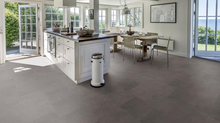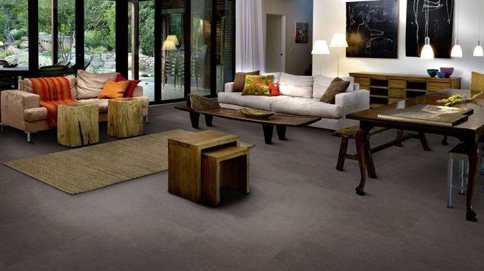 Our Luxury Tiles Dry Back collection is available in a wide selection of wood and stone designs. The wood designs range from traditional to rustic, while the stone designs span from classic stone to concrete. It also includes exciting patterns. The Dry Back floors, with a 0.3 mm wear layer, are based on virgin vinyl and constructed in five different layers, topped by a ceramic coating. The result is extremely resilient and strong floors resistant to both scratching and water, which means that these floors are suitable even for spaces exposed to heavy traffic. Just like all our other Luxury Tiles floors, they are phthalate-free.