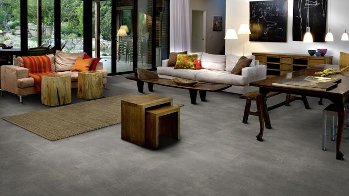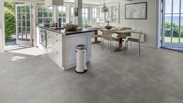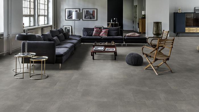 Our Luxury Tiles Dry Back collection is available in a wide selection of wood and stone designs. The wood designs range from traditional to elegant herringbone and rustic, while the stone designs span from classic stone to concrete. It also includes exciting patterns. The Dry Back floors, with a 0.7 mm wear layer, are based on virgin vinyl and constructed in five different layers, topped by a ceramic coating. The result is extremely resilient and strong floors resistant to both scratching and water, which means that these floors are suitable even for spaces exposed to heavy traffic. Just like all our other Luxury Tiles floors, they are phthalate-free.