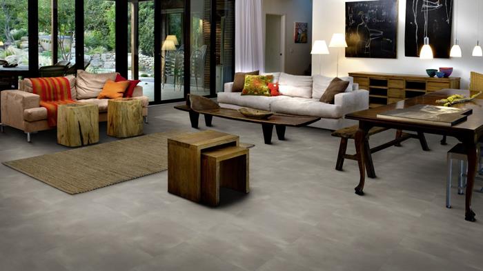 Our Luxury Tiles Dry Back collection is available in a wide selection of wood and stone designs. The wood designs range from traditional to elegant herringbone and rustic, while the stone designs span from classic stone to concrete. It also includes exciting patterns. The Dry Back floors, with a 0.7 mm wear layer, are based on virgin vinyl and constructed in five different layers, topped by a ceramic coating. The result is extremely resilient and strong floors resistant to both scratching and water, which means that these floors are suitable even for spaces exposed to heavy traffic. Just like all our other Luxury Tiles floors, they are phthalate-free.