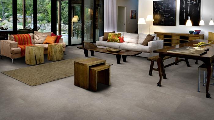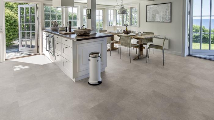 Our Luxury Tiles Dry Back collection is available in a wide selection of wood and stone designs. The wood designs range from traditional to rustic, while the stone designs span from classic stone to concrete. It also includes exciting patterns. The Dry Back floors, with a 0.3 mm wear layer, are based on virgin vinyl and constructed in five different layers, topped by a ceramic coating. The result is extremely resilient and strong floors resistant to both scratching and water, which means that these floors are suitable even for spaces exposed to heavy traffic. Just like all our other Luxury Tiles floors, they are phthalate-free.