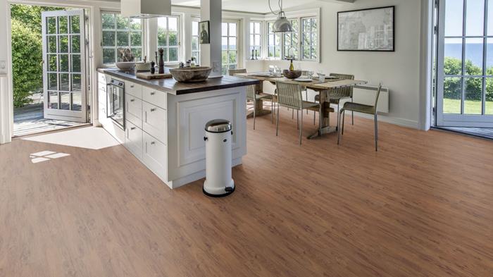 Our Luxury Tiles Dry Back collection is available in a wide selection of wood and stone designs. The wood designs range from traditional to elegant herringbone and rustic, while the stone designs span from classic stone to concrete. It also includes exciting patterns. The Dry Back floors, with a 0.7 mm wear layer, are based on virgin vinyl and constructed in five different layers, topped by a ceramic coating. The result is extremely resilient and strong floors resistant to both scratching and water, which means that these floors are suitable even for spaces exposed to heavy traffic. Just like all our other Luxury Tiles floors, they are phthalate-free.