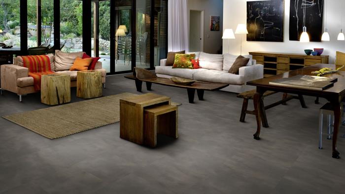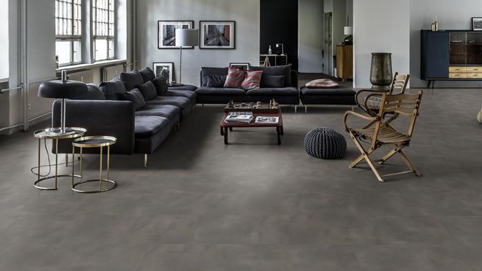 Our Luxury Tiles Dry Back collection is available in a wide selection of wood and stone designs. The wood designs range from traditional to elegant herringbone and rustic, while the stone designs span from classic stone to concrete. It also includes exciting patterns. The Dry Back floors, with a 0.7 mm wear layer, are based on virgin vinyl and constructed in five different layers, topped by a ceramic coating. The result is extremely resilient and strong floors resistant to both scratching and water, which means that these floors are suitable even for spaces exposed to heavy traffic. Just like all our other Luxury Tiles floors, they are phthalate-free.
