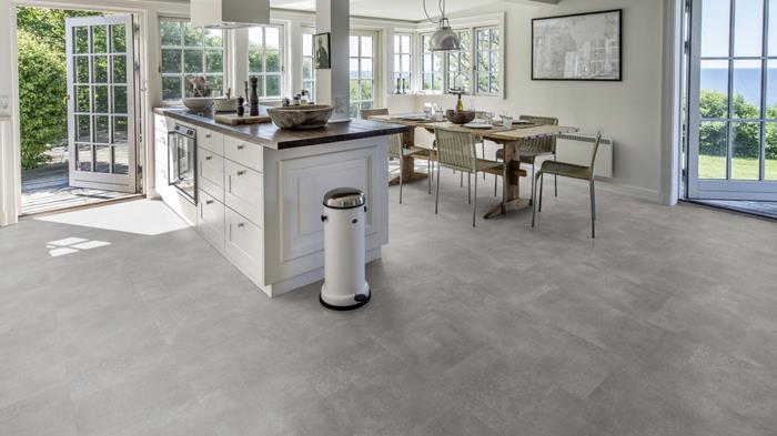 Our Luxury Tiles Dry Back collection is available in a wide selection of wood and stone designs. The wood designs range from traditional to elegant herringbone and rustic, while the stone designs span from classic stone to concrete. It also includes exciting patterns. The Dry Back floors, with a 0.7 mm wear layer, are based on virgin vinyl and constructed in five different layers, topped by a ceramic coating. The result is extremely resilient and strong floors resistant to both scratching and water, which means that these floors are suitable even for spaces exposed to heavy traffic. Just like all our other Luxury Tiles floors, they are phthalate-free.