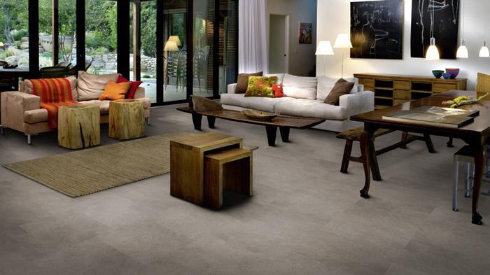The Kährs Luxury Tiles Loose Lay collection consists of a range of modular floors featuring wood and stone designs. They are easy and fast to install, featuring a non-slip reverse side requiring no adhesive. This makes them perfect for both permanent and temporary use, such as for fairs and shows. The floors are 5.0 millimeter thick, which makes them ideal for combining with carpet tiles without any difference in level. They are made from virgin vinyl and the surface is treated with a ceramic coating for strength and durability. Like all other Kährs Luxury Tiles floors they are phthalate free.