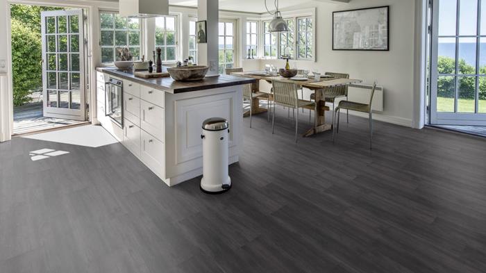 Our Luxury Tiles Dry Back collection is available in a wide selection of wood and stone designs. The wood designs range from traditional to rustic, while the stone designs span from classic stone to concrete. It also includes exciting patterns. The Dry Back floors, with a 0.3 mm wear layer, are based on virgin vinyl and constructed in five different layers, topped by a ceramic coating. The result is extremely resilient and strong floors resistant to both scratching and water, which means that these floors are suitable even for spaces exposed to heavy traffic. Just like all our other Luxury Tiles floors, they are phthalate-free.