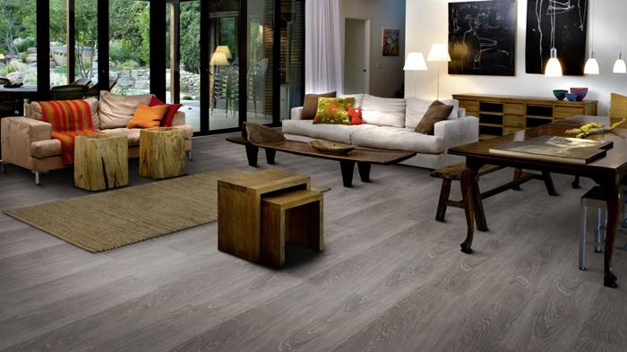 Our Luxury Tiles Dry Back collection is available in a wide selection of wood and stone designs. The wood designs range from traditional to rustic, while the stone designs span from classic stone to concrete. It also includes exciting patterns. The Dry Back floors, with a 0.3 mm wear layer, are based on virgin vinyl and constructed in five different layers, topped by a ceramic coating. The result is extremely resilient and strong floors resistant to both scratching and water, which means that these floors are suitable even for spaces exposed to heavy traffic. Just like all our other Luxury Tiles floors, they are phthalate-free.