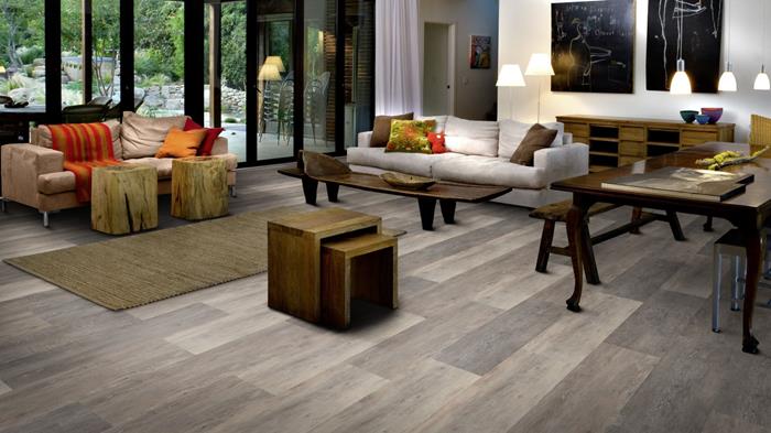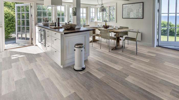 Our Luxury Tiles Dry Back collection is available in a wide selection of wood and stone designs. The wood designs range from traditional to elegant herringbone and rustic, while the stone designs span from classic stone to concrete. It also includes exciting patterns. The Dry Back floors, with a 0.7 mm wear layer, are based on virgin vinyl and constructed in five different layers, topped by a ceramic coating. The result is extremely resilient and strong floors resistant to both scratching and water, which means that these floors are suitable even for spaces exposed to heavy traffic. Just like all our other Luxury Tiles floors, they are phthalate-free.