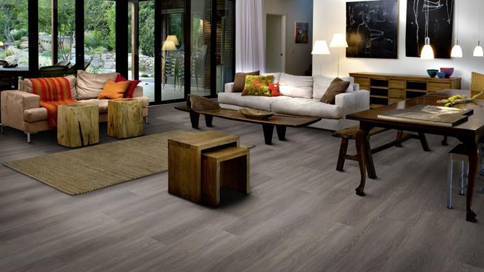 Our Luxury Tiles Dry Back collection is available in a wide selection of wood and stone designs. The wood designs range from traditional to rustic, while the stone designs span from classic stone to concrete. It also includes exciting patterns. The Dry Back floors, with a 0.3 mm wear layer, are based on virgin vinyl and constructed in five different layers, topped by a ceramic coating. The result is extremely resilient and strong floors resistant to both scratching and water, which means that these floors are suitable even for spaces exposed to heavy traffic. Just like all our other Luxury Tiles floors, they are phthalate-free.