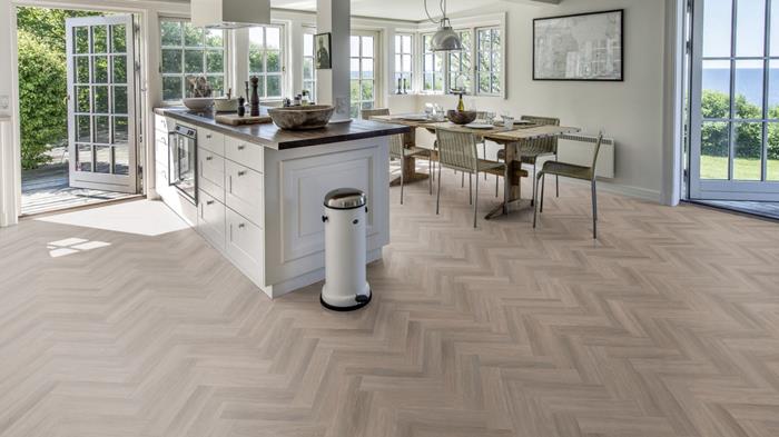 Our Luxury Tiles Dry Back collection is available in a wide selection of wood and stone designs. The wood designs range from traditional to elegant herringbone and rustic, while the stone designs span from classic stone to concrete. It also includes exciting patterns. The Dry Back floors, with a 0.7 mm wear layer, are based on virgin vinyl and constructed in five different layers, topped by a ceramic coating. The result is extremely resilient and strong floors resistant to both scratching and water, which means that these floors are suitable even for spaces exposed to heavy traffic. Just like all our other Luxury Tiles floors, they are phthalate-free.