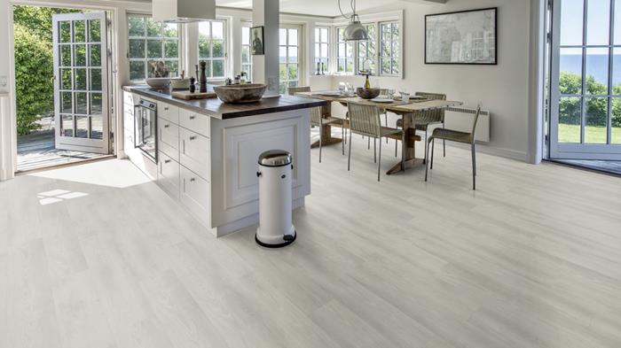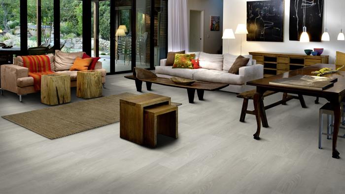 Our Luxury Tiles Dry Back collection is available in a wide selection of wood and stone designs. The wood designs range from traditional to rustic, while the stone designs span from classic stone to concrete. It also includes exciting patterns. The Dry Back floors, with a 0.3 mm wear layer, are based on virgin vinyl and constructed in five different layers, topped by a ceramic coating. The result is extremely resilient and strong floors resistant to both scratching and water, which means that these floors are suitable even for spaces exposed to heavy traffic. Just like all our other Luxury Tiles floors, they are phthalate-free.