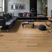 Oak AB natural, a 2-layer construction, is a clean oak floor. Offered with a variety of surface treatments and patterns.