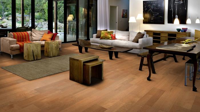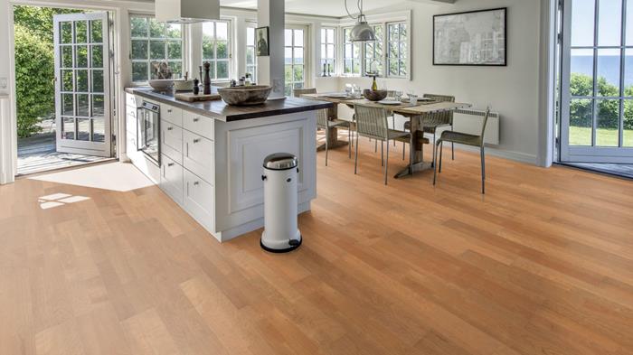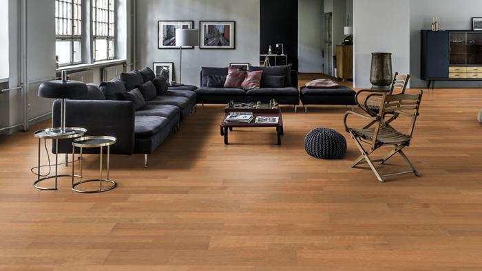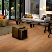 The reddish-brown hues in this 2-strip cherry floor from the Lodge Collection highlight the minimal colour variations in the wood, resulting in a very warm expression. The silk lacquer finish gives the floor a polished appearance bringing out the natural character of the timber. The even finish protects the wood from daily wear, without adding artificial shine.