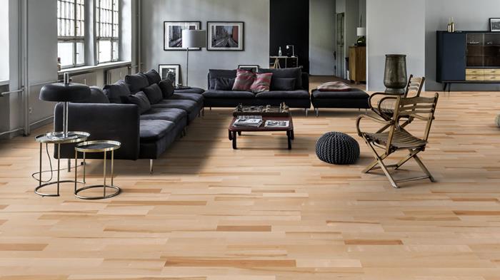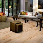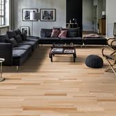 The warm blonde hues in this 2-strip, hard maple floor from the Lodge Collection are enhanced by the natural colour variations in the wood resulting in a classic expression.