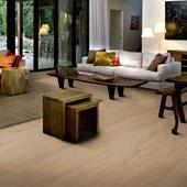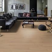 The dusty blonde hues in this single-strip oak floor from the Living Collection enhance the natural rays present in the timber for a distinctive expression. Each board is carefully brushed to bring out the character of the grain and highlight the texture of the wood. Four-sided micro-bevelling at the edges ensures a classic full plank look and feel. The matt lacquer finish eliminates glare while protecting the wood from daily wear.