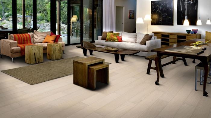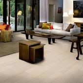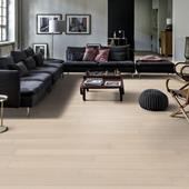 The honey hues found in this single-strip oak floor from the Habitat Collection enhance the grain with a warm colour palette. The floor comes with long planks, which add depth to its clean expression. Four-sided bevelling at the edges ensures a classic full plank look and feel. Each board is carefully brushed to bring out the character of the grain and highlight the natural texture of the timber. The matt lacquer finish eliminates glare while protecting the wood from daily wear.