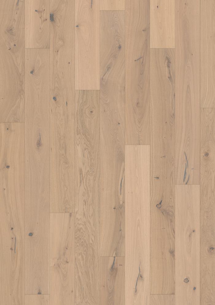 Oak Larus captures the airy clarity of pale, white-oiled oak. Its softly washed tones feel effortless and clean, allowing the natural patterning of the wood to take center stage. Knots and natural variations are hand-treated with wooden plugs and filler to create a harmonious, subtle expression. Finished with a white-tinted natural oil that settles into the wood, Oak Larus gains a smooth, low-sheen surface that reflects light with serene, understated elegance.
