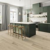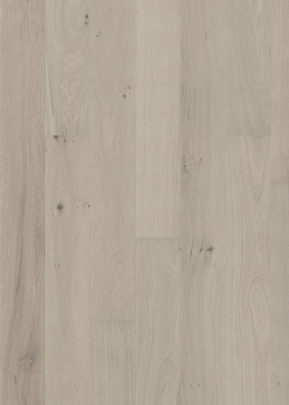 The muted grey-brown tones in this single-strip oak floor from the Canvas Collection, are enhanced by an even stain, resulting in a timeless expression. Each board is carefully brushed to bring out the character of the grain and highlight the natural texture of the wood. The matte lacquer finish eliminates glare while protecting the wood from daily wear. Four-sided bevelling at the edges ensures a classic full plank look and feel.