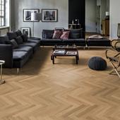 Oak AB, a 2-layer construction, is a clean oak with some colour variation and small knots with a matt finish. The product is delivered with both left and right version in the bundles for herringbone installation.