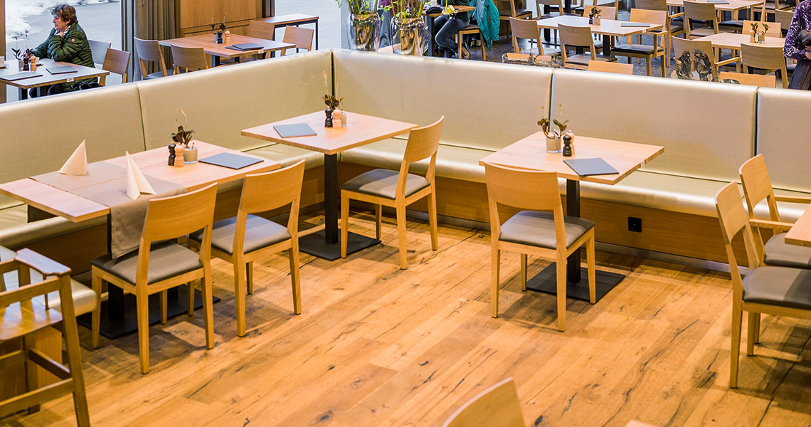 Niché dans l'une des plus belles chaînes de montagnes d'Europe, l'hôtel Säntis a ouvert ses portes en décembre 2015 sur le col de Schwägalp. Les salles de réunion confortablement équipées, avec le chêne Maggiore de la collection Da Capo au design vintage, invitent à une réunion détendue. Dans l'espace bien-être exclusif, le chêne à 1 lamelle Sevede de la collection Småland a été installé, qui rayonne de calme et de sérénité grâce à la finesse de son grain.