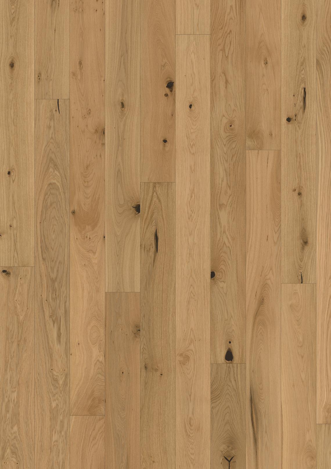 Le chêne Tulip présente une teinte claire qui lui confère un aspect moderne et doux, rappelant le bois de chêne fraîchement coupé. Les lames étroites de 151 mm soulignent son caractère raffiné, tandis que la surface brossée et vernie mate adoucit délicatement les fissures et les nœuds, laissant apparaître le grain naturel du bois de chaque lame pour un rendu visuel et tactile subtil et élégant.