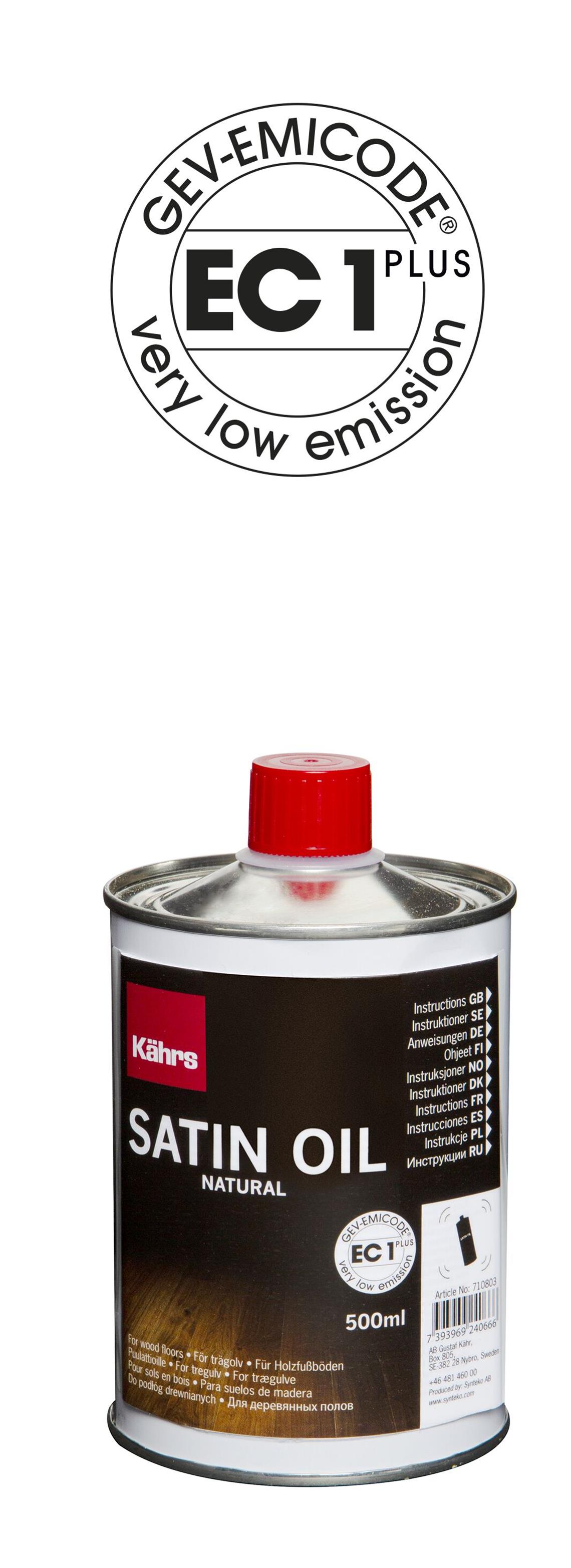Kährs Satin Oil er en herdende uretan olje for periodisk vedlikehold og grovrengjøring av oljebehandlede tre- og parkettgulv. Produktet holder gulvet vakkert ved å gi treet et beskyttende oljelag med en vakker glans. Rekker til: 100-150 m2. Informasjon til Kährs-forhandlere: Selges i displaykartong med 6 stykker.